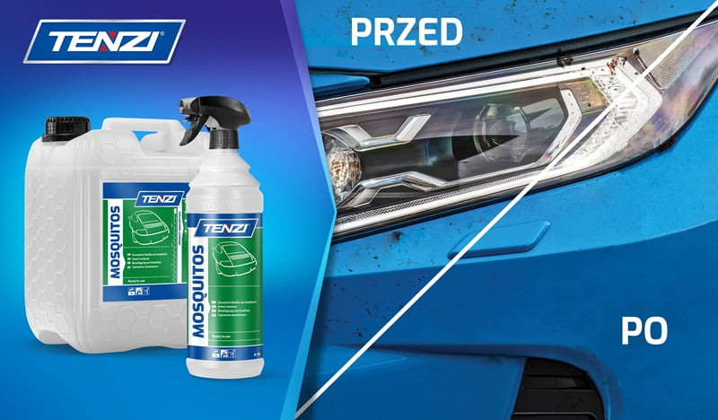 Takie zanieczyszczenia można jednak usuwać bez wysiłku i konieczności szorowania wiążącego się z ryzykiem zarysowania lakieru lub szyb. Wystarczy użyć profesjonalnego środka – polecamy płyn do usuwania owadów z samochodu - TENZI Mosquitos, który zamówisz w naszym sklepie internetowym. Dzięki specjalnie opracowanej formule skutecznie rozpuszcza resztki owadów i tym samym ułatwia ich usuwanie. Jednocześnie jest on bezpieczny dla wszystkich rodzajów materiałów – można go używać na powierzchniach lakierowanych, plastikach (np. reflektory), elementach gumowych i szybach.