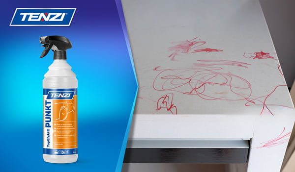 Jednym z większych wyzwań, z jakim często trzeba się zmierzyć podczas czyszczenia różnych powierzchni w pokoju dziecka, są ślady po kredkach, pisakach oraz naklejkach. Usuwanie tego typu plam z biurka i powierzchni innych mebli kojarzy się z uciążliwym szorowaniem, ale możesz tego uniknąć! Wystarczy, że zaopatrzysz się w produkt TENZI TopEfekt PUNKT – z niezwykłą skutecznością rozpuszcza powyższe zanieczyszczenia i tym samym ułatwia ich usuwanie. Został wykonany na bazie naturalnego pochodzenia rozpuszczalników oraz alkoholi, co czyni go bezpiecznym dla czyszczonych powierzchni. Świetnie poradzi sobie także m.in. z: